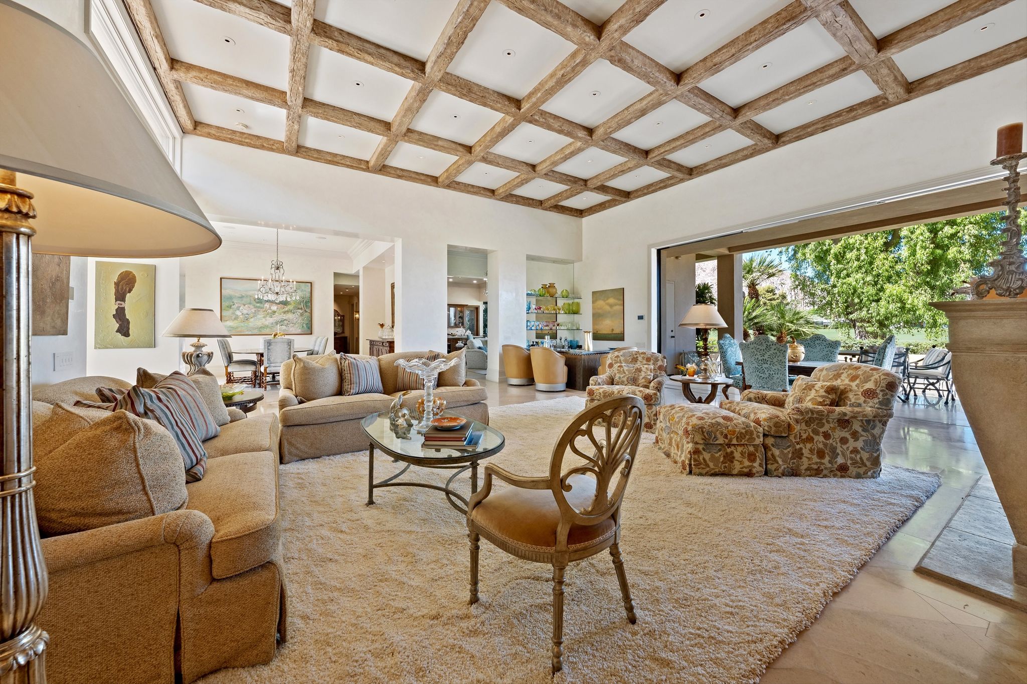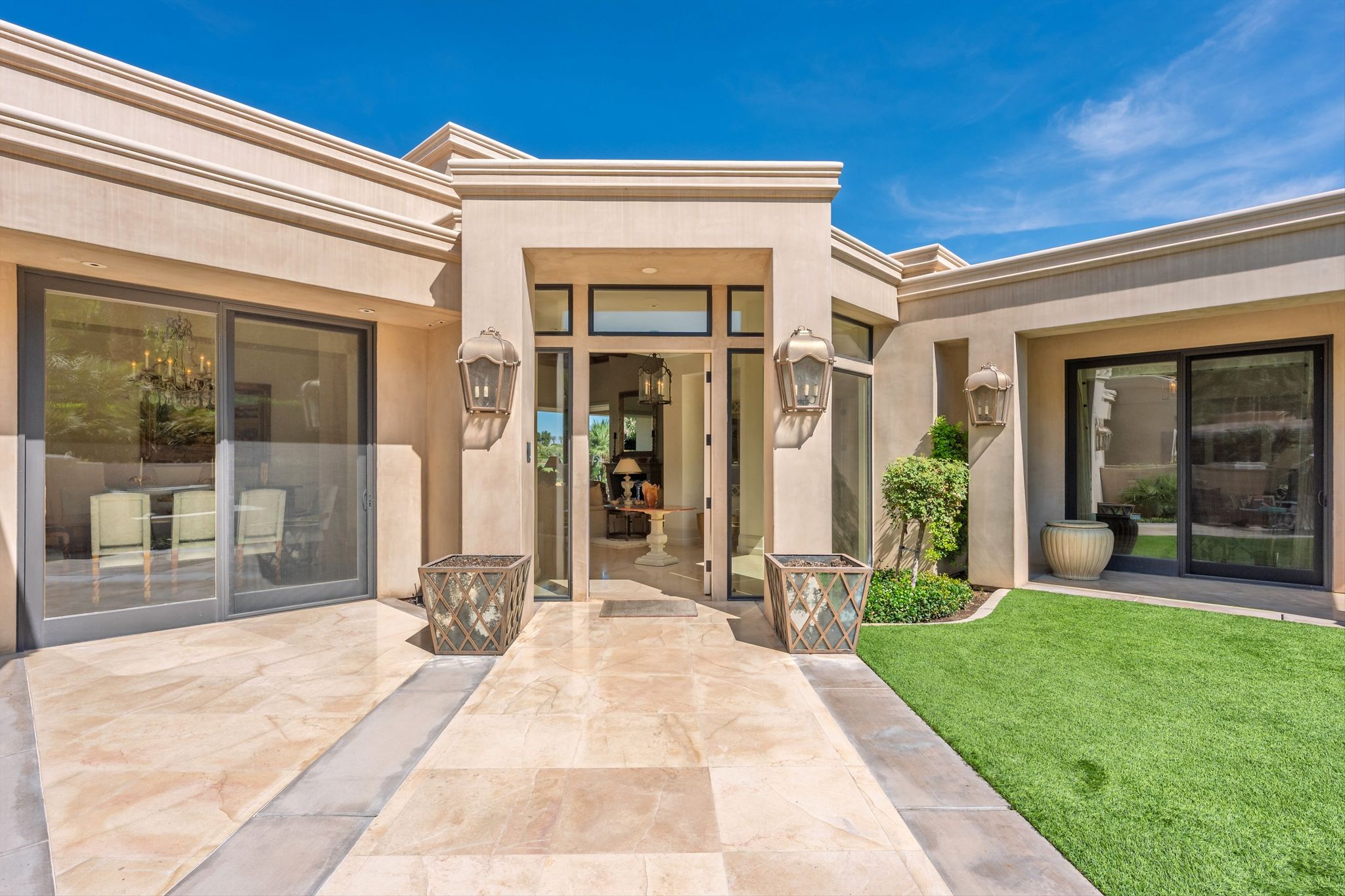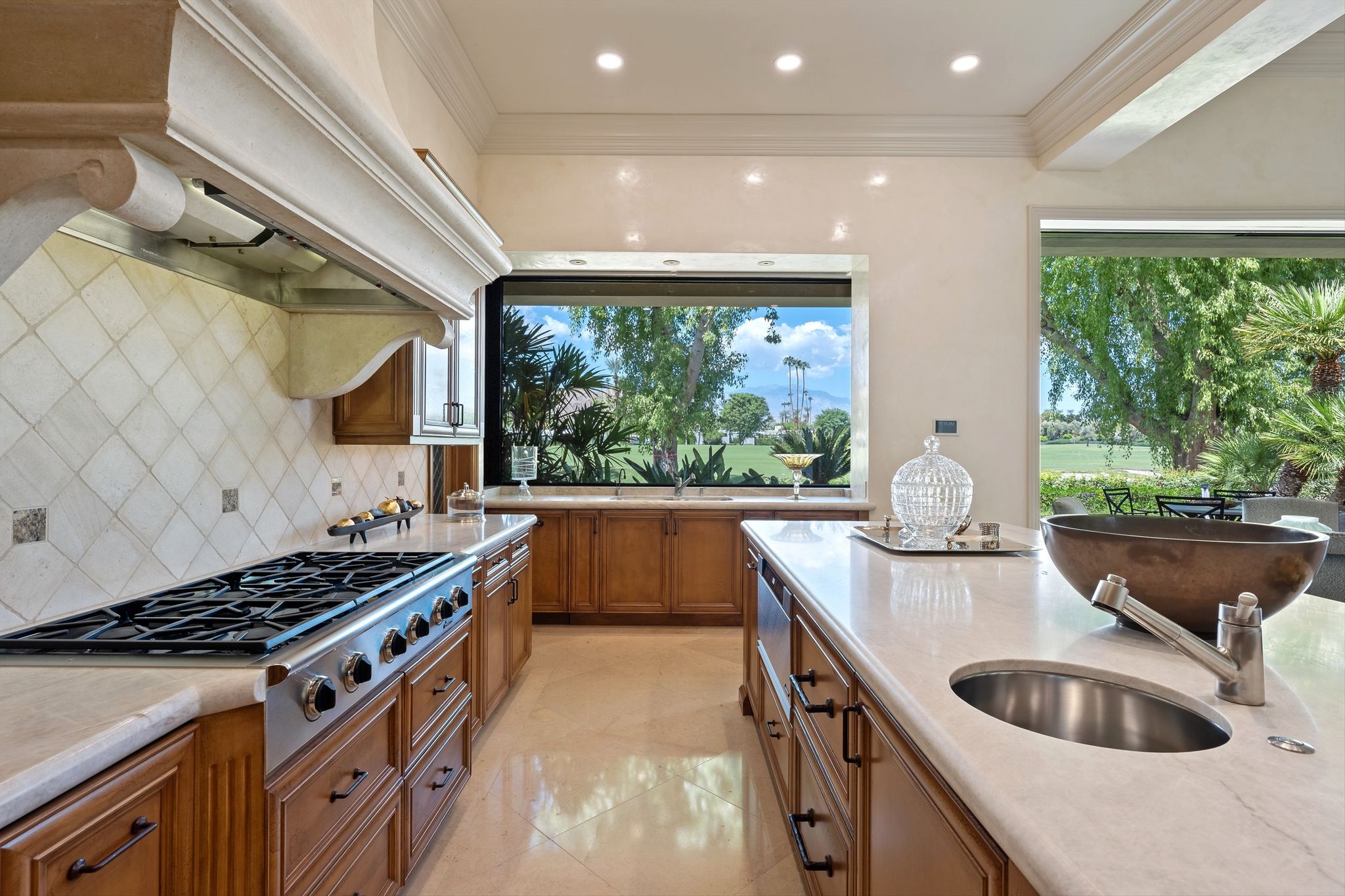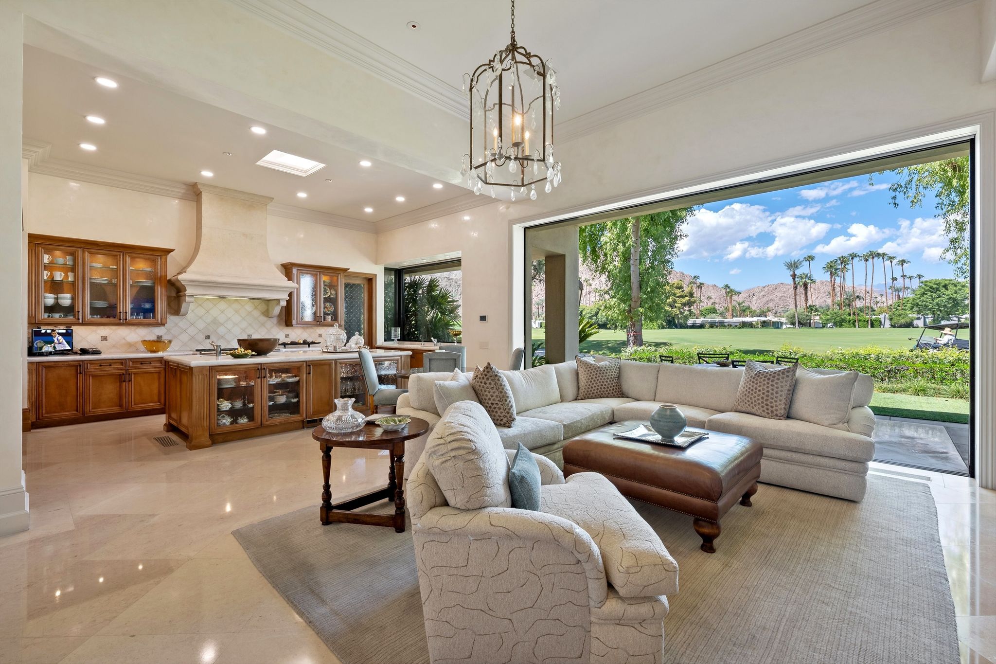This stunning property, built in 2007, boasts an impressive 5,452 sq. ft. of exquisite living space on a generous 16,988 sq. ft. lot, perfectly positioned on the picturesque 18th fairway.As you arrive you are greeted by the sound of a tranquil fountain in the entry courtyard, surrounded by the dramatic… Read MoreSanta Rosa foothills. Step into the heart of this home – a gourmet kitchen designed for both culinary enthusiasts and entertaining connoisseurs. Adorned with custom cabinetry and luxurious Taj Mahal Quartzite countertops, this space features top-of-the-line Dacor appliances, including a 6-burner gas cooktop, dual ovens, and two Miele dishwashers, encouraging effortless meal preparation and entertaining. The kitchen also includes two SubZero refrigerator doors with four freezer drawers, a double stainless steel sink, an additional island sink, and a walk-in pantry – a perfect blend of style and function. Custom Fleetwood disappearing pocket doors bring the outside in from the family room area with jaw dropping views of Mount San Jacinto over manicured fairways.The formal living room, characterized by a stunning wood beam ceiling, exudes sophistication with its inviting cut limestone fireplace and Fleetwood disappearing sliding doors that seamlessly integrate indoor and outdoor living. Venetian plaster walls elegantly showcase throughout this home, providing an opulent backdrop for gatherings and celebrations. A chic, well-appointed wet bar with a wine refrigerator and ice maker make entertaining simple.This remarkable home features a total of five beautifully appointed bedrooms, each providing a unique oasis for relaxation. The master suite offers breathtaking views of the San Jacinto mountains and fairway, complete with an extravagant en-suite bathroom featuring glistening abalone tile walls, double sinks, a spacious walk-in shower, a sumptuous soaking tub, and generous walk-in closet & storage.Each guest bedroom comes with its own en-suite bathroom, adorned with travertine counters and showers, ensuring maximum comfort and privacy for family and guests. Noteworthy are the serene views from the North Guest Bedroom and South Guest Bedroom, with picturesque panoramas of the golf course and mountains. One of the two Guest Bedrooms on the East side of this home is ideally situated to function as an additional family space or home office.This property leaves no stone unturned, featuring a spacious laundry room with granite countertops and ample storage. A stylish private powder bathroom adorned with glass tile and travertine flooring. The Creston smart home system offers cutting-edge technology to elevate your living experience, ensuring complete control over lighting, climate, and security.Live among the beauty of nature and the elegance of luxury design within the secure, serene surroundings of Eldorado Country Club. This remarkable property is more than just a home; it is an extraordinary lifestyle awaiting its new owner. Schedule your private tour today and discover the unmatched beauty and elegance of this exquisite estate!CLICK HERE TO VIEW PHOTOS & VIDEO TOURRead Less